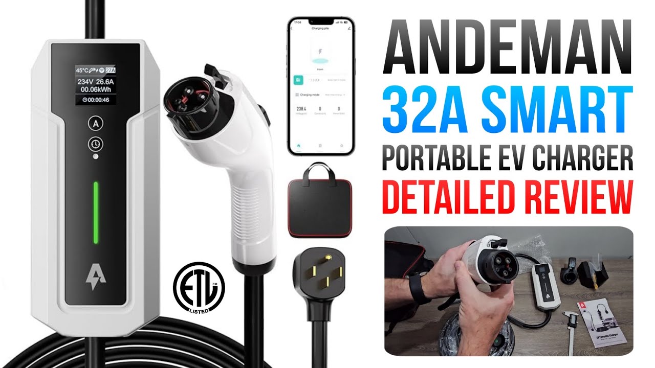 Unboxing and detailed review of the Andeman smart portable 32 amp ev charger that is also ETL listed. This EV charger is a great deal on a level 2 EV